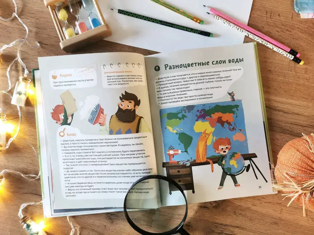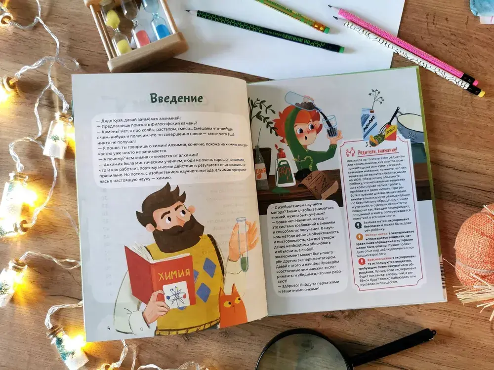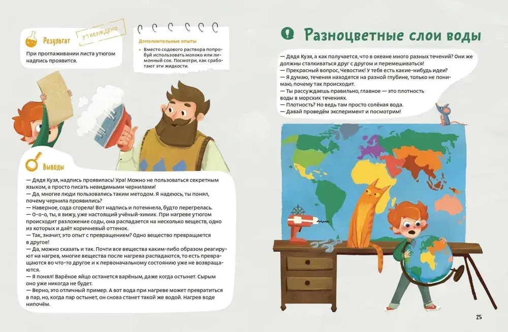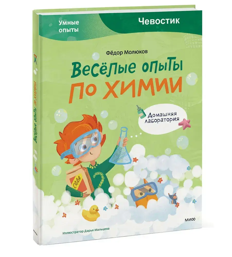 Вместе с Чевостиком дети научатся писать секретные послания невидимыми чернилами, смастерят шипучую бомбочку с запахом газировки и конфет, сделают двигатель для бумажных корабликов из... обычного мыла и многое другое.