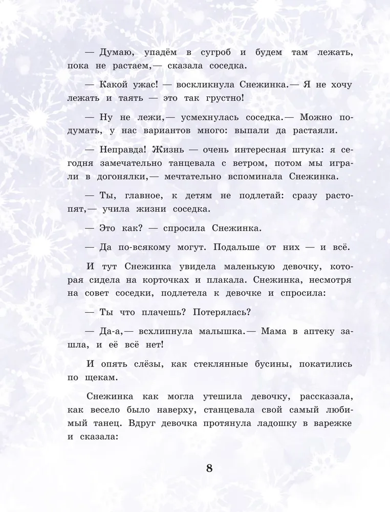 Вы узнаете, что думает уличный фонарь, о чем мечтает снежинка, как общаются звезды, как умеет танцевать стиральный порошок, о чем спорят зима и весна — и многое другое.