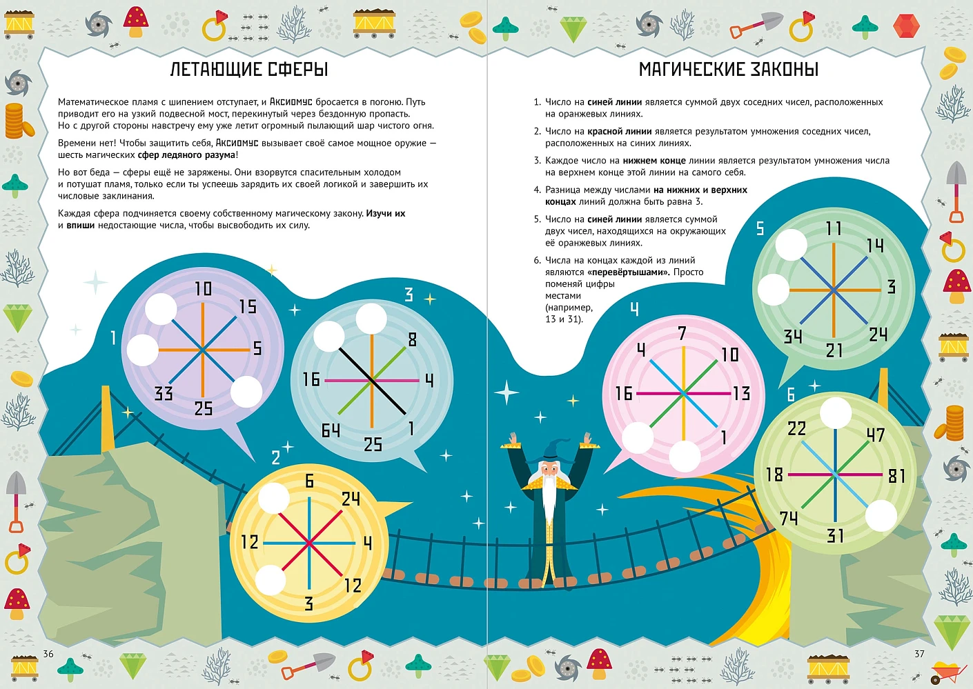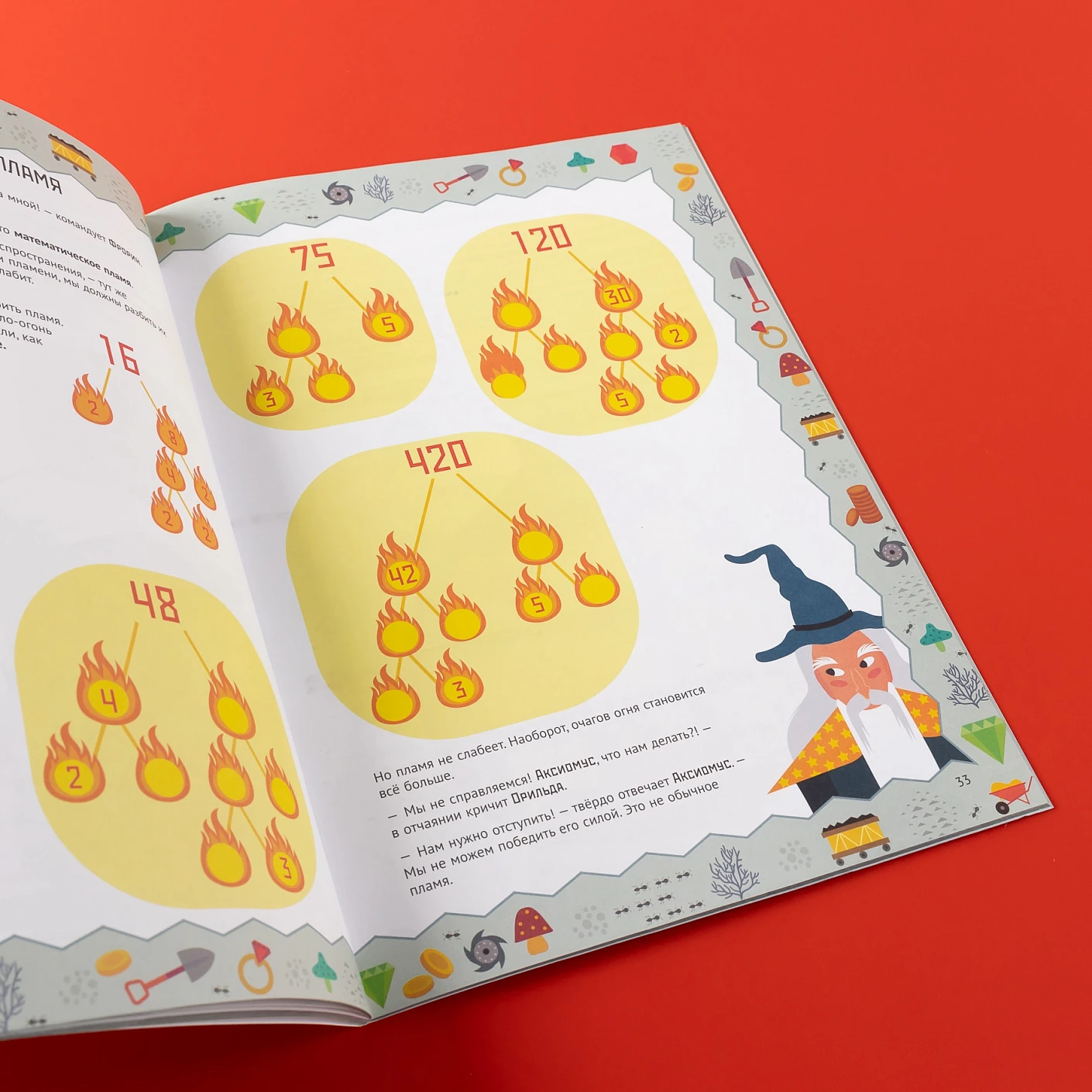 В этой тетради математика превращается в приключение, полное тайн, сокровищ и магии. Королевство гномов в беде! Их шахты охвачены пожарами, сокровищницы в хаосе, а древние легенды зашифрованы так хитро, что даже мудрецы не могут их прочесть. Приготовься отправиться в подземелья вместе с магом-математиком Аксиомусом, принцем Фрорином и принцессой Орильдой, чтобы спасти их мир
