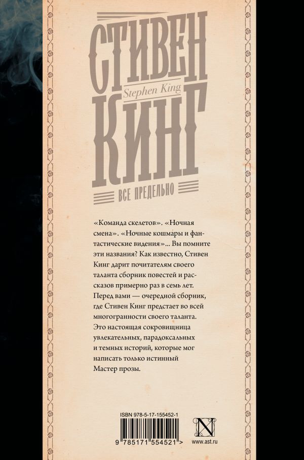 Стивен Кинг особенно хорош в малой форме. Раз в семь-восемь лет писатель радует своих поклонников сборником маленьких шедевров. Перед вами как раз одна из таких книг. Талант автора в ней раскрывается во всей многогранности. Это настоящая сокровищница увлекательных и темных историй, написать которые мог только истинный Мастер прозы. Да еще и в коллекционном оформлении Андрея Фереза.