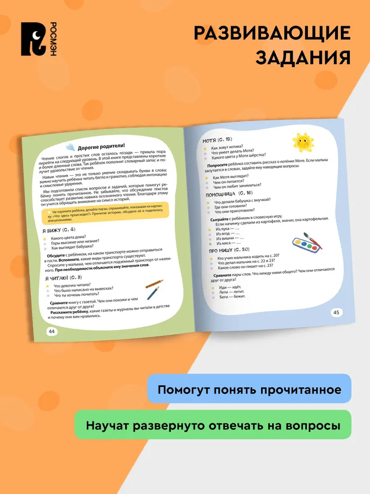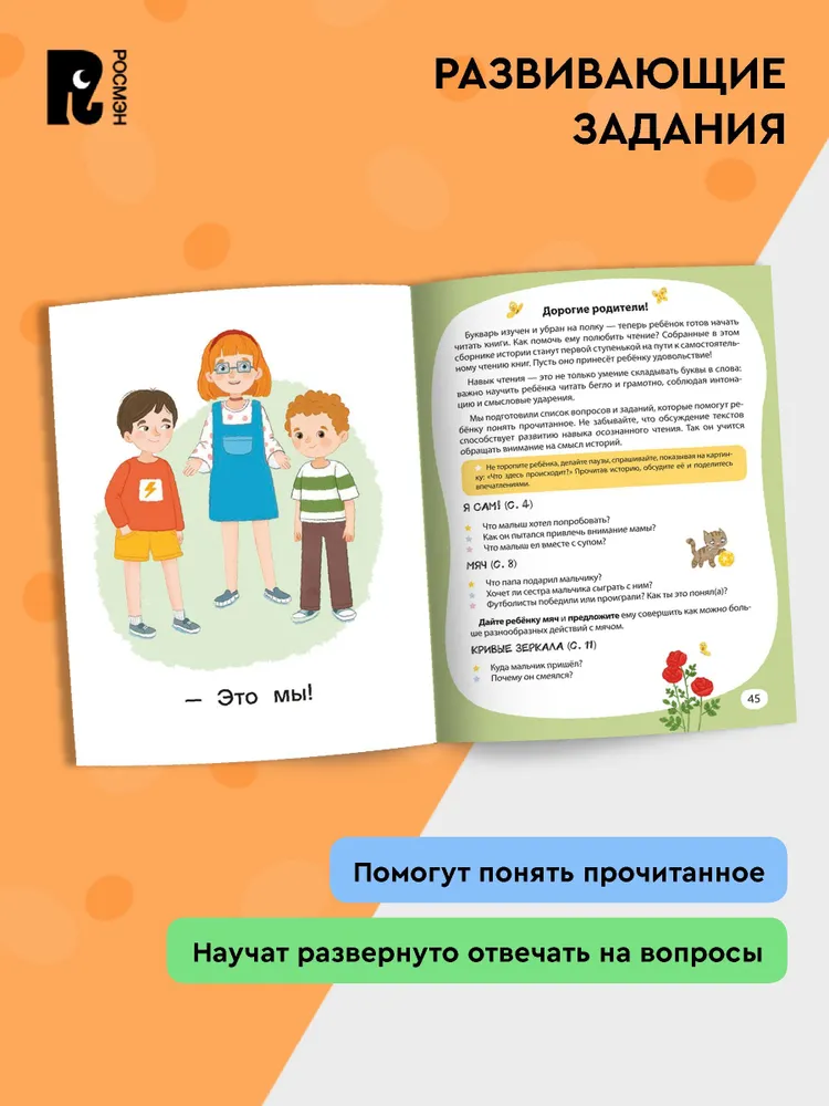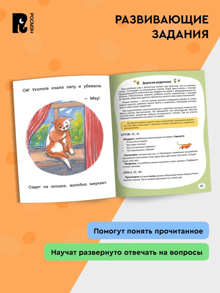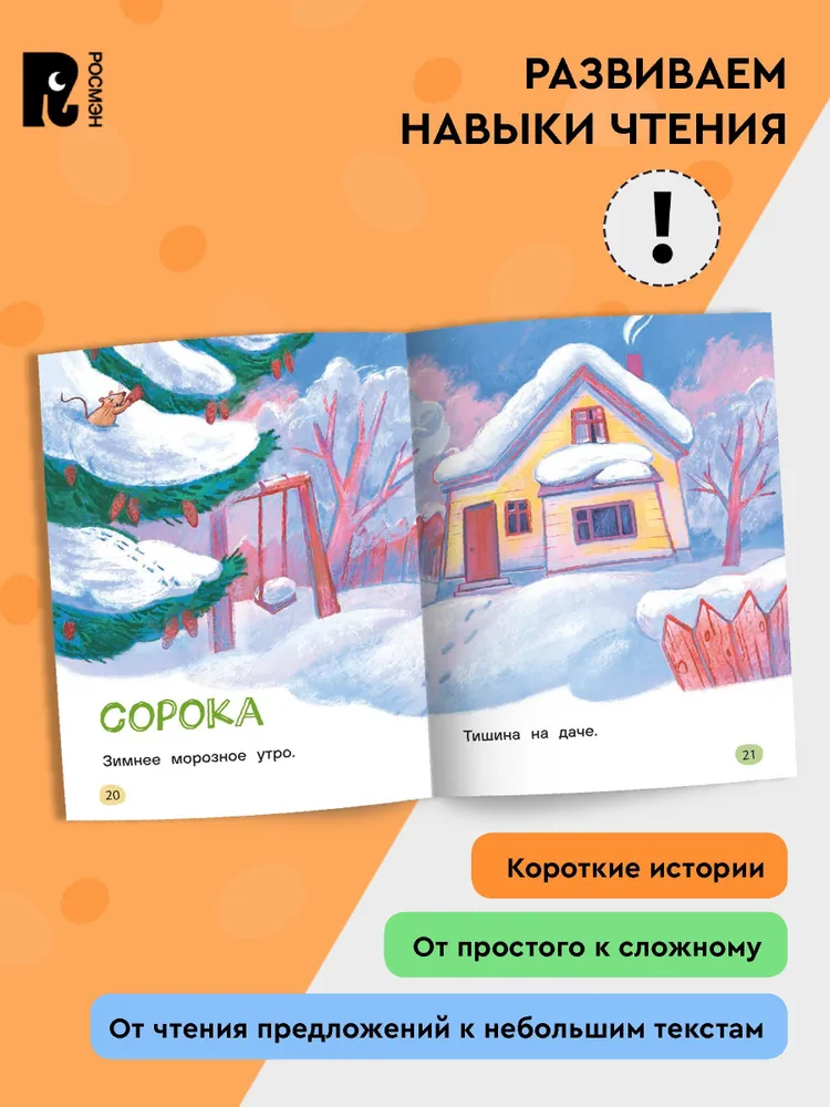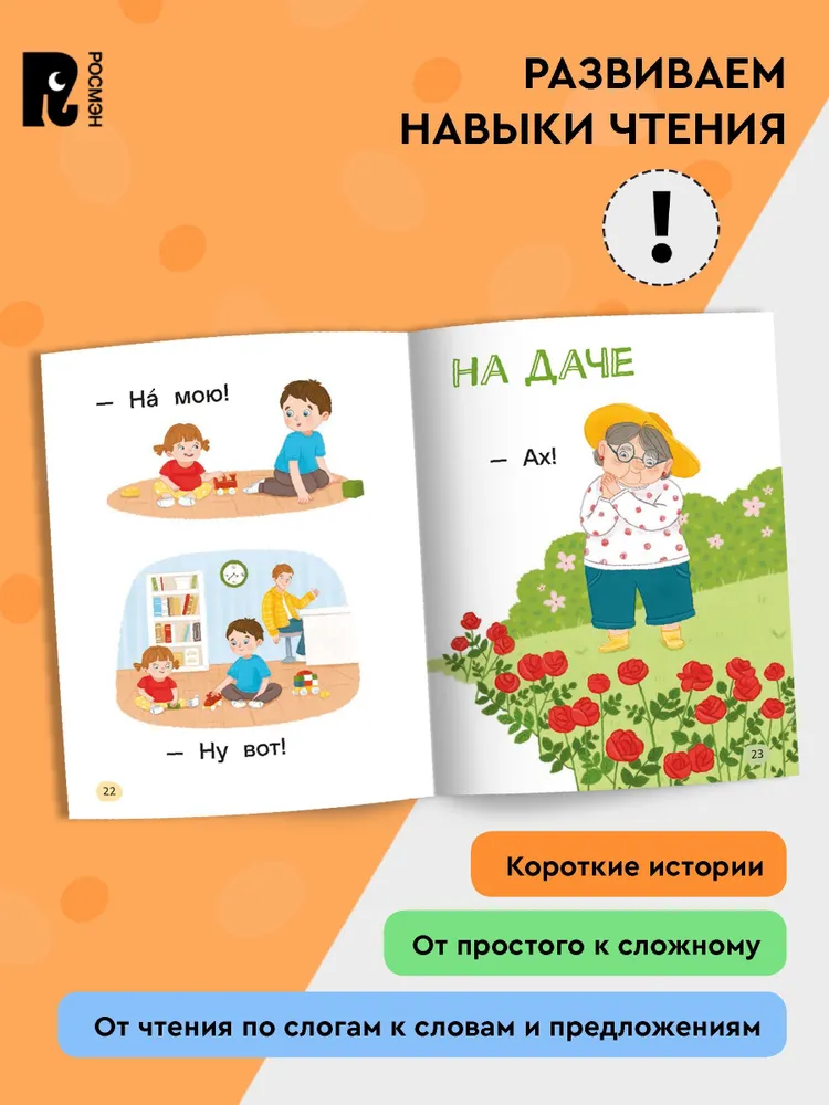В этой книге собраны короткие истории, которые прекрасно подойдут для первого чтения. Крупныйшрифт комфортен для зрения, а милые персонажи запомнятся ребенку и не дадут ему заскучать. В конце вы найдете задания, выполнив которые ребенок научится подбирать антонимы и потренирует согласование слов в предложении. В серию «СКОРОШКОЛА. Первое чтение» входят 4 книги разного уровня сложности — от чтения слогов до небольших текстов. Книги предназначены для детей от 5 лет.