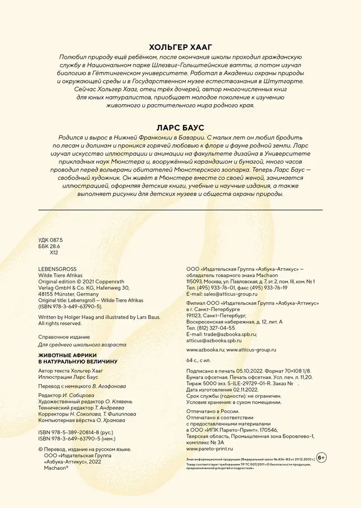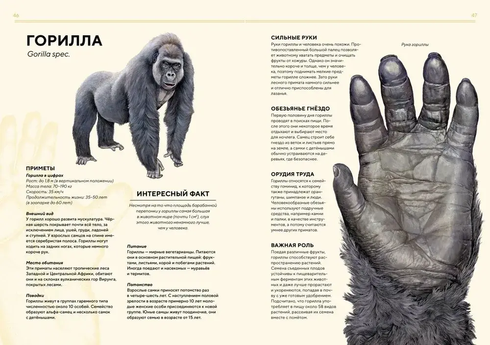 Благодаря этой книге ты познакомишься с животными Африки и найдёшь ответы на самые любопытные вопросы. Знаешь ли ты, какой длины язык у жирафа? Как общаются слоны? Почему глаза кошек светятся в темноте? Какая обезьяна строит гнёзда? Красочные иллюстрации, большая часть которых выполнена в натуральную величину, позволят как следует рассмотреть удивительных обитателей континента и оценить их размеры.