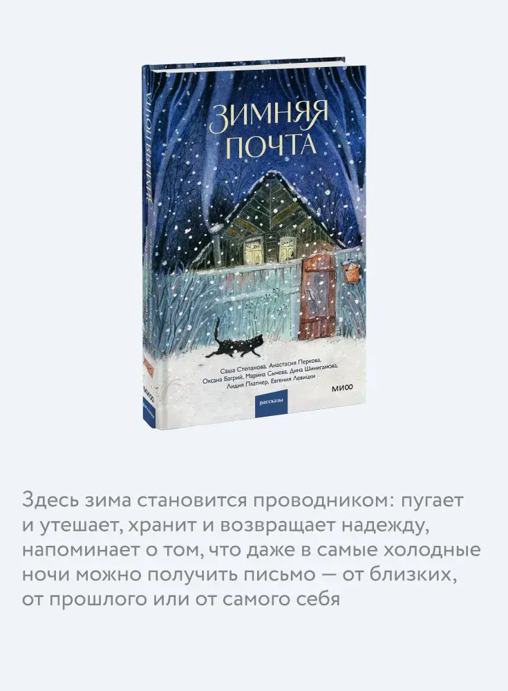 «Зимняя почта» — это письма из разных миров, которые приходят в самую долгую и холодную пору. Иногда это весточка из мира мертвых, иногда — напоминание о забытом, иногда — послание самому себе. В этих историях зима становится проводником: она хранит и бережет, пугает и утешает, заставляет помнить и помогает начать заново.